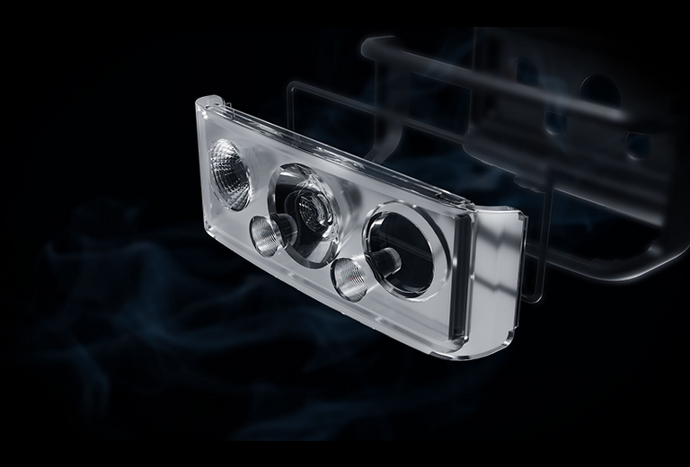 The innovative Multiple Optic Technology (MOT) enables digital switching between high beam, floodlight, reading light and red light without moving parts.