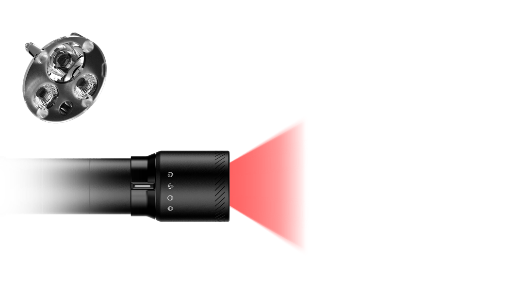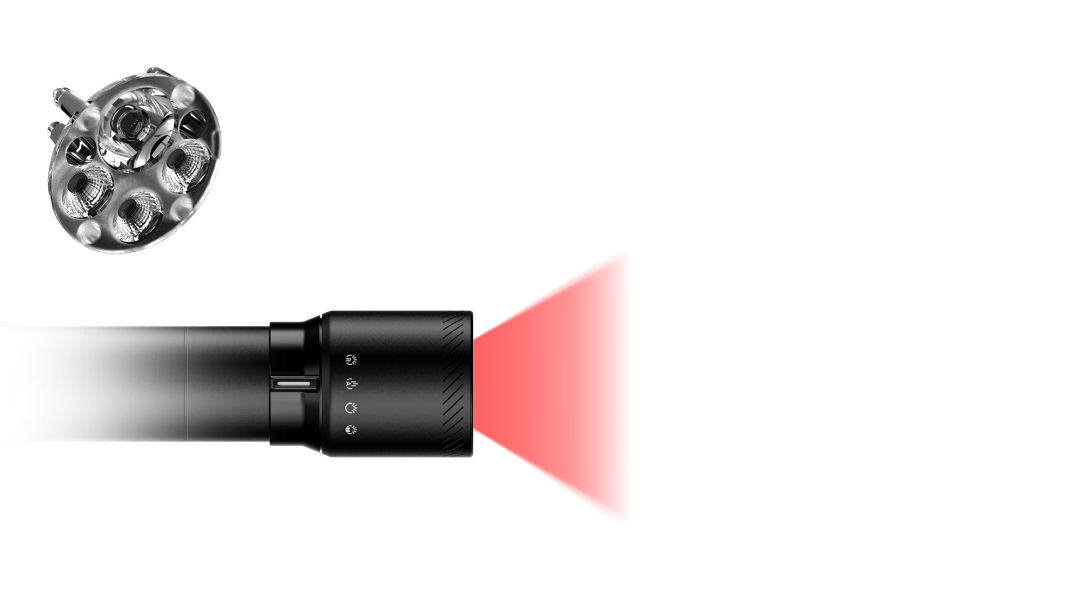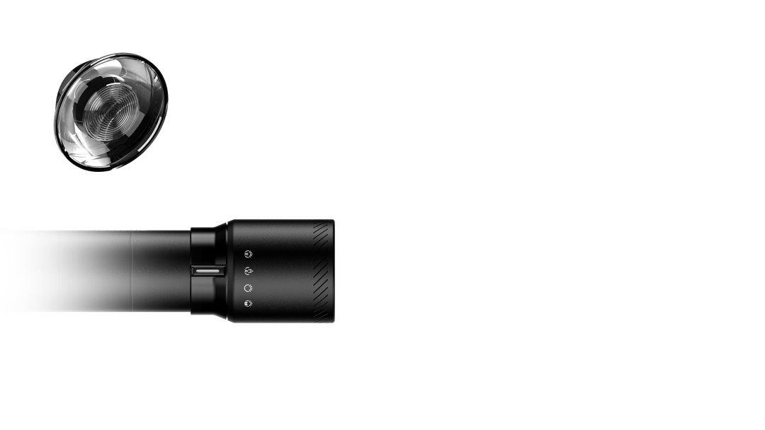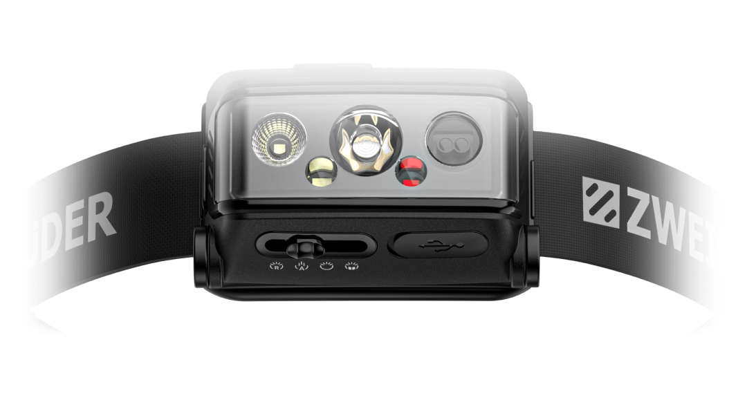 With the integrated Focus Switch, you can select your desired light mode before even turning it on. This way, you start immediately with optimal lighting: high beam, floodlight, reading light, or red light.